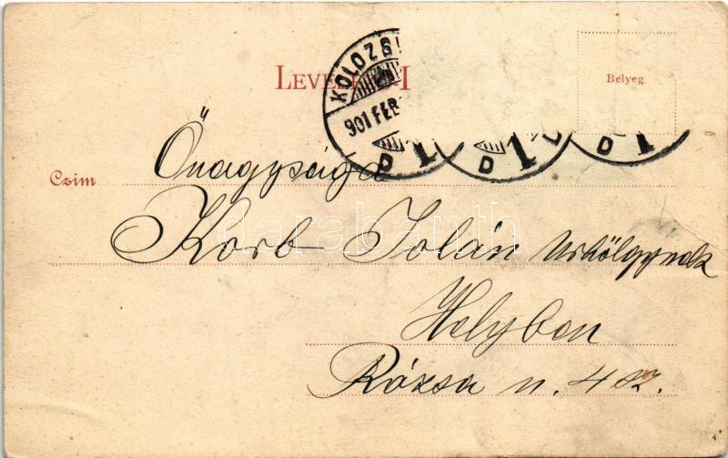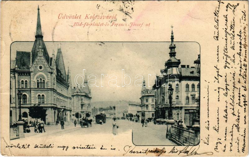 1901 Kolozsvár, Cluj; Hídfő részlet, Ferenc József út, Phönix biztosító, városi vasút, kisvasút, vonat / street, insurance company, urban railway, train (fa)