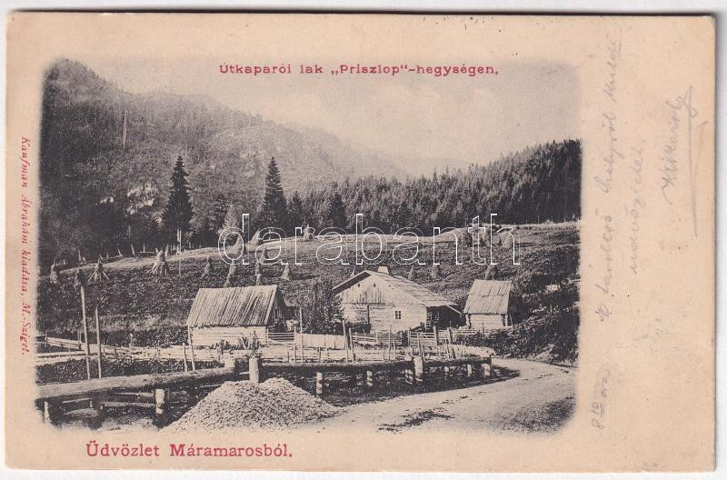 1902 Priszlop-hegység, Prislop (Máramaros, Maramures); Útkaparói lak. ... https://www.darabanth.com/de/436-Fernauktion/436.0/Ansichtskarten/Siebenburgen~2000005/1902-Priszlop-hegyseg-Prislop-Maramaros-Maramures-Utkaparoi-lak-Kaufman-Abraham-kiadasa~II2824990