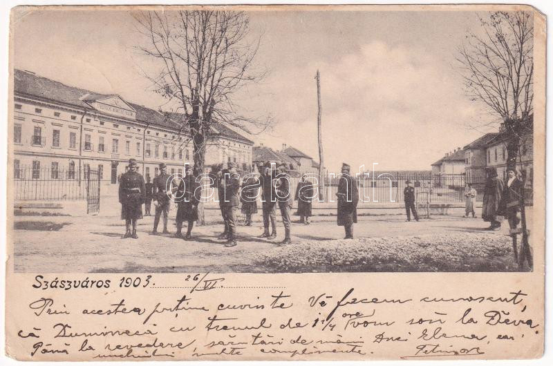 Beschreibung: 1903 Szászváros, Broos, Orastie; Städtische Infanterie Kaserne / Városi gyalogsági laktanya. Adler Alfréd kiadása / K.u.k military infantry barracks (EK)