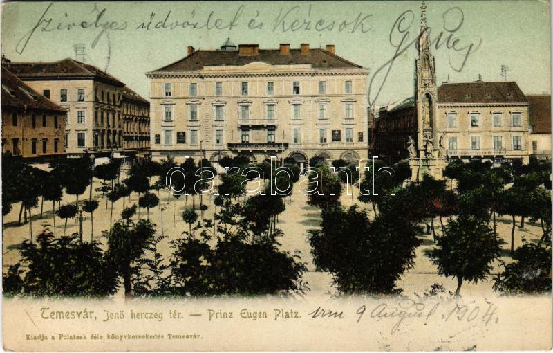 1904 Temesvár, Timisoara; Jenő herceg tér, emlékmű, Temesi Agrár Takar... https://www.darabanth.com/de/436-Fernauktion/436.0/Ansichtskarten/Siebenburgen~2000005/1904-Temesvar-Timisoara-Jeno-herceg-ter-emlekmu-Temesi-Agrar-Takarekpenztar-Uhrmann-He~II2809544