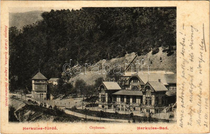 Beschreibung: 1906 Herkulesfürdő, Herkulesbad, Baile Herculane; Dalszínház. Fenyves Oszkár kiadása / Orfeum / Orpheum (fl)