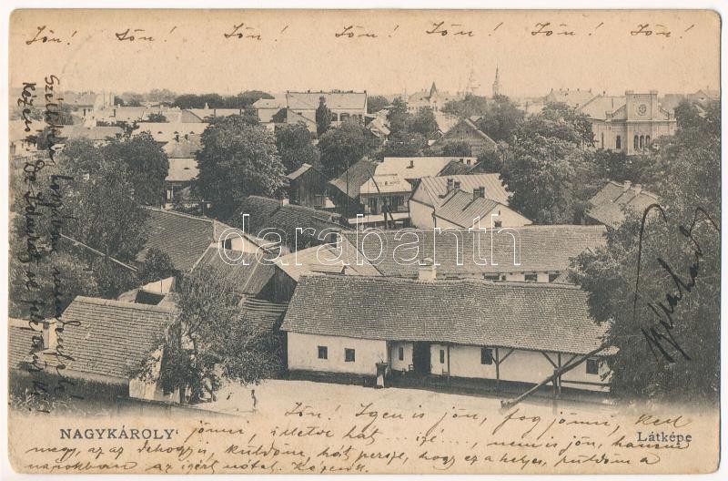 1906 Nagykároly, Carei; látkép, zsinagóga. Csókás László kiadása / gen... https://www.darabanth.com/de/436-Fernauktion/436.0/Ansichtskarten/Siebenburgen~2000005/1906-Nagykaroly-Carei-latkep-zsinagoga-Csokas-Laszlo-kiadasa-general-view-with-synago~II2624012