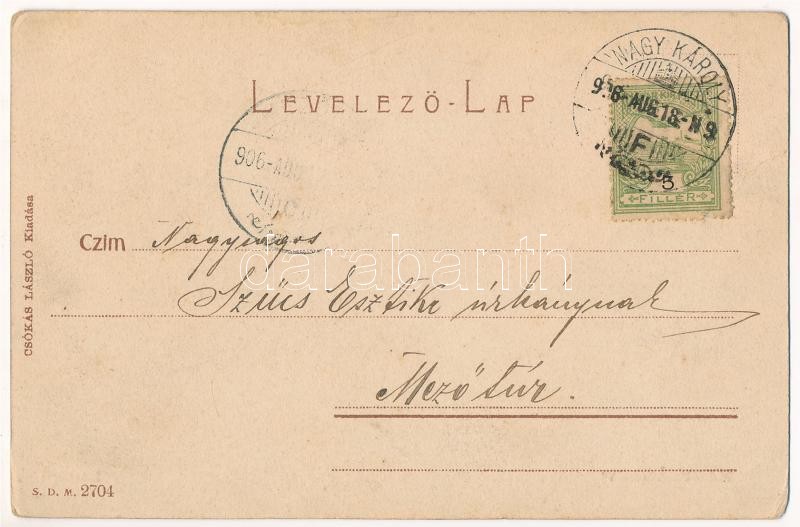 Beschreibung: 1906 Nagykároly, Carei; látkép, zsinagóga. Csókás László kiadása / general view with synagogue (EK)