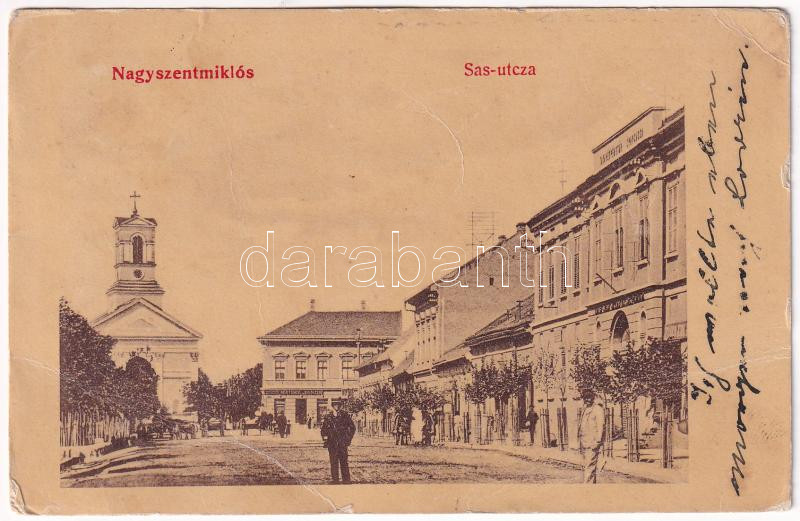 1908 Nagyszentmiklós, Sannicolau Mare; Sas utca, Takarékpénztár, Mausz... https://www.darabanth.com/de/436-Fernauktion/436.0/Ansichtskarten/Siebenburgen~2000005/1908-Nagyszentmiklos-Sannicolau-Mare-Sas-utca-Takarekpenztar-Mausz-Janos-uzlete-street-v~II2834051