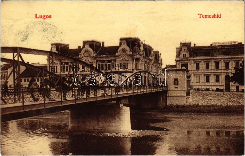 1910 Lugos, Lugoj; Temes híd, Délmagyarországi Bank, Haberehrn vasudva... https://www.darabanth.com/de/436-Fernauktion/436.0/Ansichtskarten/Siebenburgen~2000005/1910-Lugos-Lugoj-Temes-hid-Delmagyarorszagi-Bank-Haberehrn-vasudvar-Berecz-J-kiadasa-Tim~II2825472