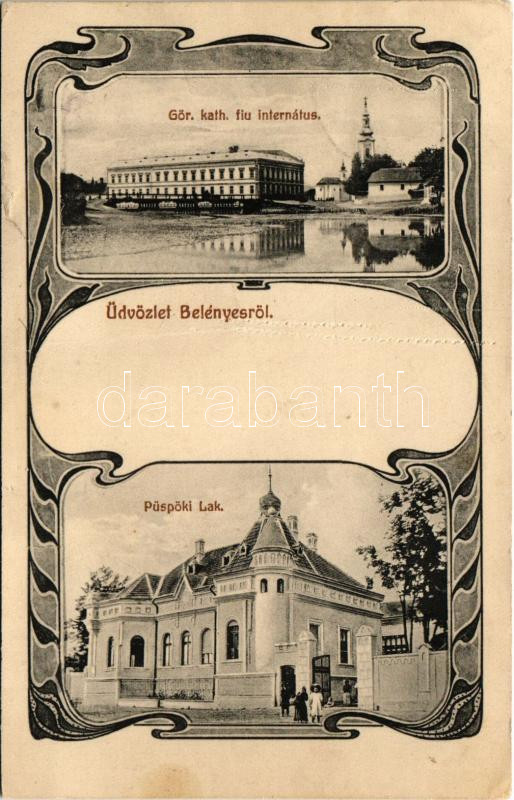 1916 Belényes, Beius; Görög katolikus fiú internátus, püspöki lak. Wagner Villi kiadása / Greek Catholic boy boarding school, bishop's residence. Art Nouveau (fa)