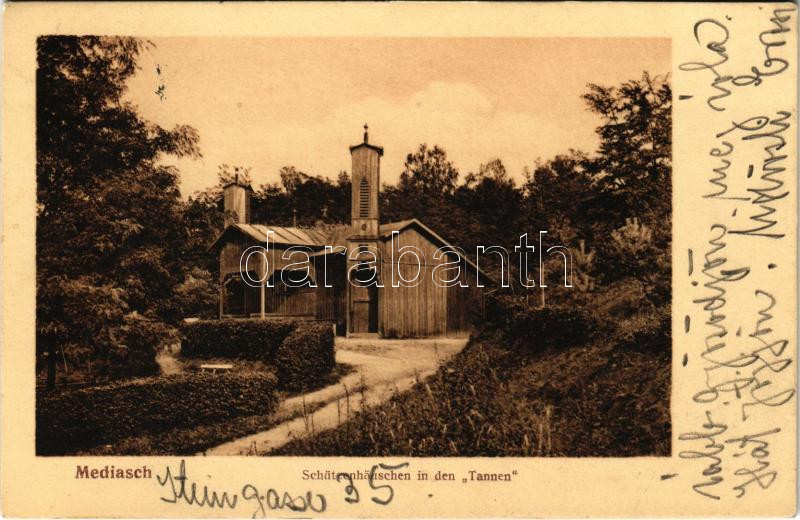 1917 Medgyes, Mediasch, Medias; Lövölde. Franz Wendler kiadása / Schüt... https://www.darabanth.com/de/436-Fernauktion/436.0/Ansichtskarten/Siebenburgen~2000005/1917-Medgyes-Mediasch-Medias-Lovolde-Franz-Wendler-kiadasa-Schutzenhauschen-in-den-Tannen~II2831929