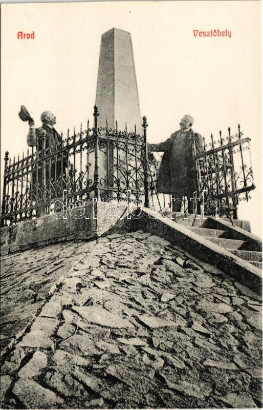 Arad, Vesztőhely / Locul Pierzaniei / monument (vágott / cut) https://www.darabanth.com/de/436-Fernauktion/436.0/Ansichtskarten/Siebenburgen~2000005/Arad-Vesztohely-Locul-Pierzaniei-monument-vagott-cut~II2831222