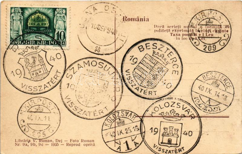 Beschreibung: Désakna, Ocna Dejului; Baile sarata / Sós gyógyfürdő, strand, fürdőzők / spa, bathers + "1940 Dés visszatért" "1940 Szamosújvár visszatért" "1940 Beszterce visszatért" "1940 Kolozsvár visszatért" So. Stpl. (fl)