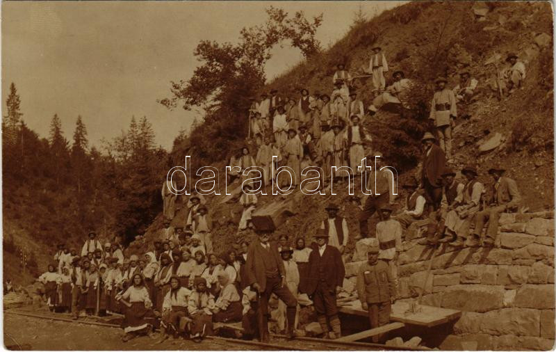 Erdélyi vasút építése, munkások / Transylvanian railway construction, ... https://www.darabanth.com/de/436-Fernauktion/436.0/Ansichtskarten/Siebenburgen~2000005/Erdelyi-vasut-epitese-munkasok-Transylvanian-railway-construction-workers-photo-EK~II2826510