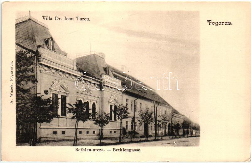Fogaras, Fagaras; Villa Dr. Ioan Turcu, Bethlen utca, kiadja A. Wazek ... https://www.darabanth.com/de/436-Fernauktion/436.0/Ansichtskarten/Siebenburgen~2000005/Fogaras-Fagaras-Villa-Dr-Ioan-Turcu-Bethlen-utca-kiadja-A-Wazek-villa-street-EK~II1394396