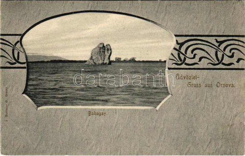 Beschreibung: Orsova, Al-Duna. Babagája szikla. Hutterer G. kiadása / Der Babagay-Felsen / Babagaj rock. Art Nouveau