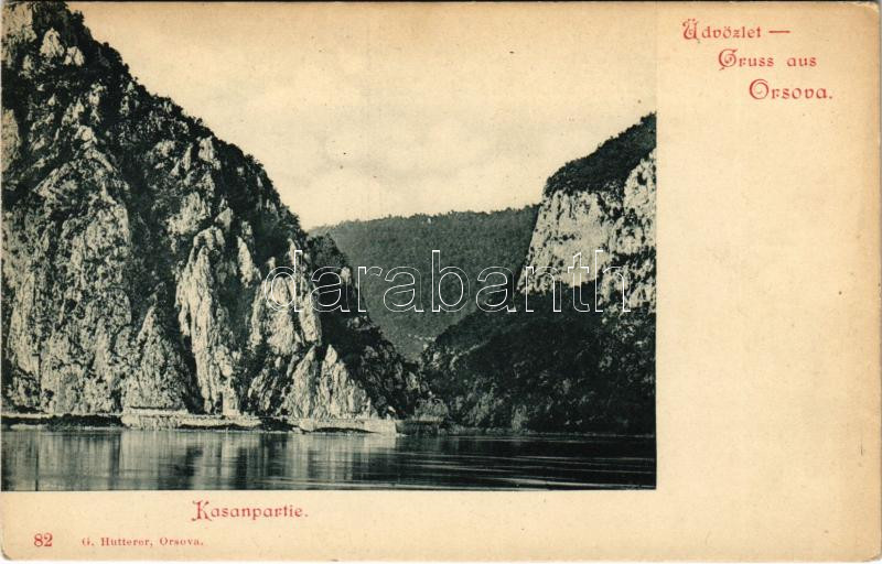 Beschreibung: Orsova, Kazán-szoros. Hutterer G. kiadása / Kasanpartie / Cazane / gorge