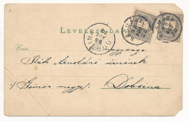 1898 (Vorläufer) Késmárk, Kezmarok; Városháza, Magas Tátra, Fő tér, Lyceum új épülete / Vysoké Tatry, town hall, main square, new grammar school. Kunstanstalt Karl Schwidernoch Art Nouveau, floral, litho (EM)