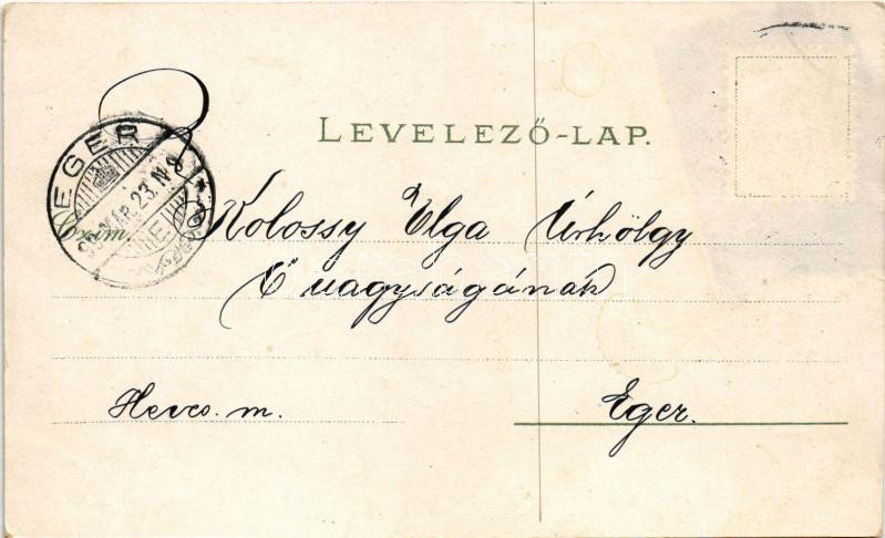 1899 (Vorläufer) Kassa, Kosice; Felső Fő utca, Állami ipariskola, dóm, Gazdasági tanintézet, gőzfürdő. Varga kiadása / main street, schools, spa, dome. Art Nouveau, floral, litho (vágott / cut)