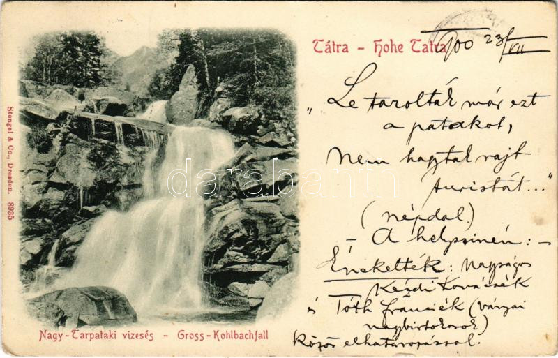 1900 Tátra, Vysoké Tatry; Nagytarpataki vízesés / Gross Kohlbachfall /... https://www.darabanth.com/de/436-Fernauktion/436.0/Ansichtskarten/Slowakei~2000006/1900-Tatra-Vysoke-Tatry-Nagytarpataki-vizeses-Gross-Kohlbachfall-waterfall~II2829180