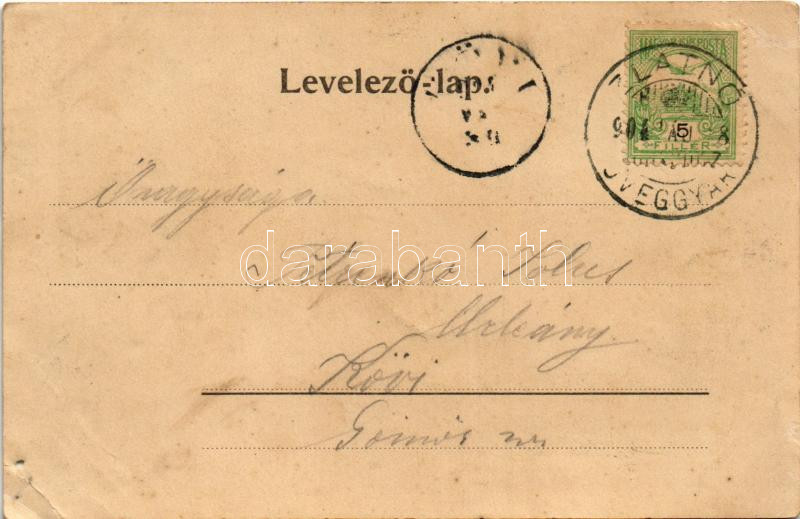 Beschreibung: 1904 Zlatnó, Zlatnótelep, Zlatno; üveggyár, kastély / glassworks, glass factory, castle. Art Nouveau, floral (b)