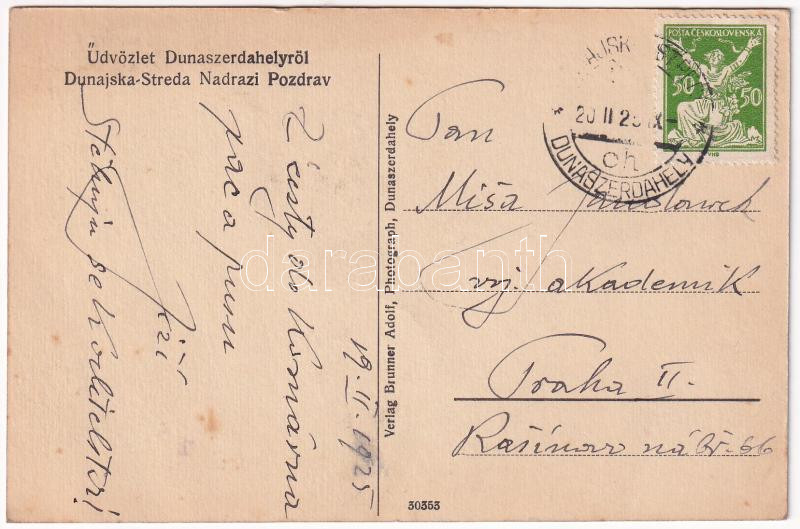 1925 Dunaszerdahely, Dunajská Streda; Nadrazi / vasútállomás, vasutaso... https://www.darabanth.com/de/436-Fernauktion/436.0/Ansichtskarten/Slowakei~2000006/1925-Dunaszerdahely-Dunajska-Streda-Nadrazi-vasutallomas-vasutasok-Brunner-Adolf-kiadasa-~II2833832