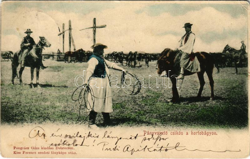 1900 Hortobágy, pányvavető csikós. Pongrácz Géza kiadása, Kiss Ferenc ... https://www.darabanth.com/de/436-Fernauktion/436.0/Ansichtskarten/Ungarn~2000004/1900-Hortobagy-panyvaveto-csikos-Pongracz-Geza-kiadasa-Kiss-Ferenc-eredeti-fenykepe-uta~II2828032