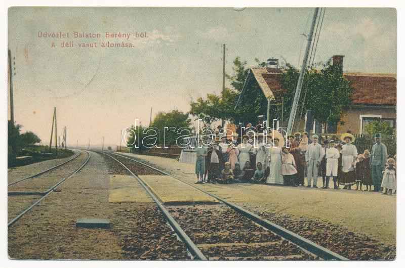 Balatonberény, Déli vasút állomása, vasútállomás, sorompó. Neumark Ado... https://www.darabanth.com/de/436-Fernauktion/436.0/Ansichtskarten/Ungarn~2000004/Balatonbereny-Deli-vasut-allomasa-vasutallomas-sorompo-Neumark-Adolf-kiadasa-EK~II2832031