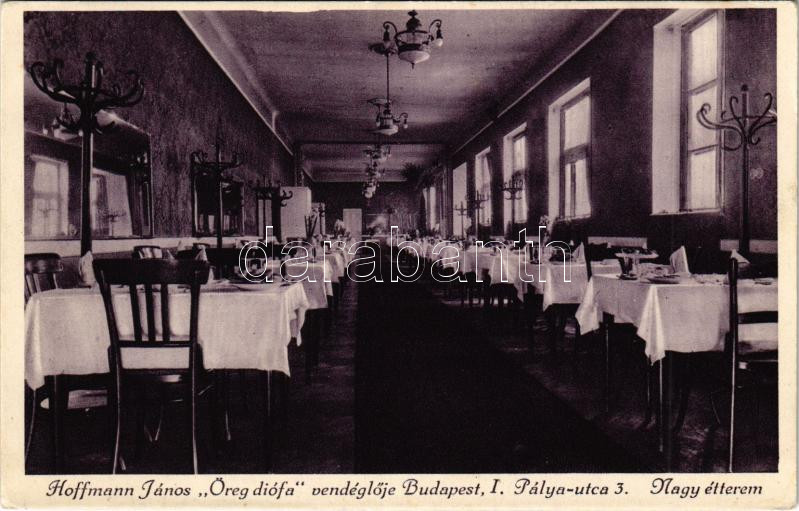 Budapest I. Hoffmann János Öreg diófa vendéglője, nagy étterem, belső.... https://www.darabanth.com/de/436-Fernauktion/436.0/Ansichtskarten/Ungarn~2000004/Budapest-I-Hoffmann-Janos-Oreg-diofa-vendegloje-nagy-etterem-belso-Palya-utca-3~II2833172