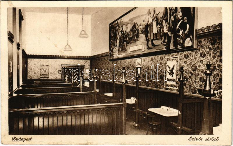 Budapest VIII. Szivós söröző belső. József körút 85. https://www.darabanth.com/de/436-Fernauktion/436.0/Ansichtskarten/Ungarn~2000004/Budapest-VIII-Szivos-sorozo-belso-Jozsef-korut-85~II2833210
