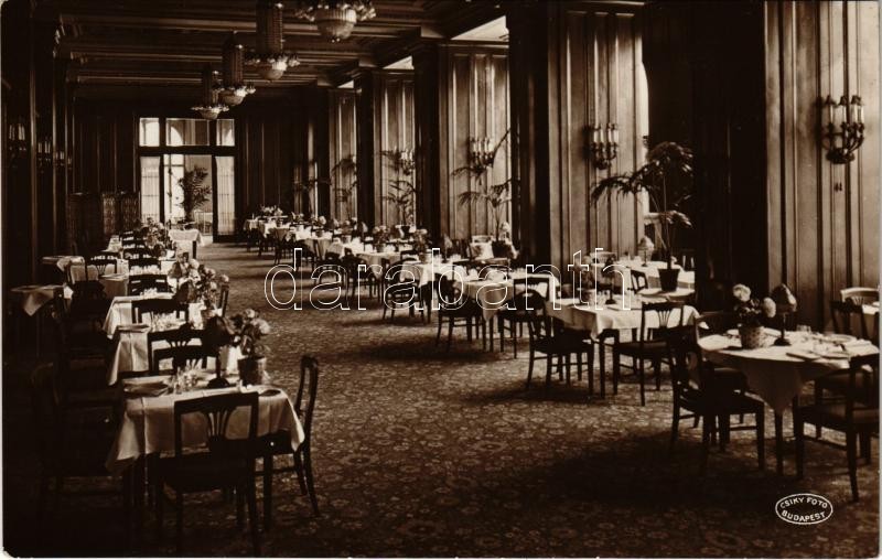 Budapest XI. Szent Gellért szállloda Gundel étterme, belső. Csiky Foto https://www.darabanth.com/de/436-Fernauktion/436.0/Ansichtskarten/Ungarn~2000004/Budapest-XI-Szent-Gellert-szallloda-Gundel-etterme-belso-Csiky-Foto~II2732314