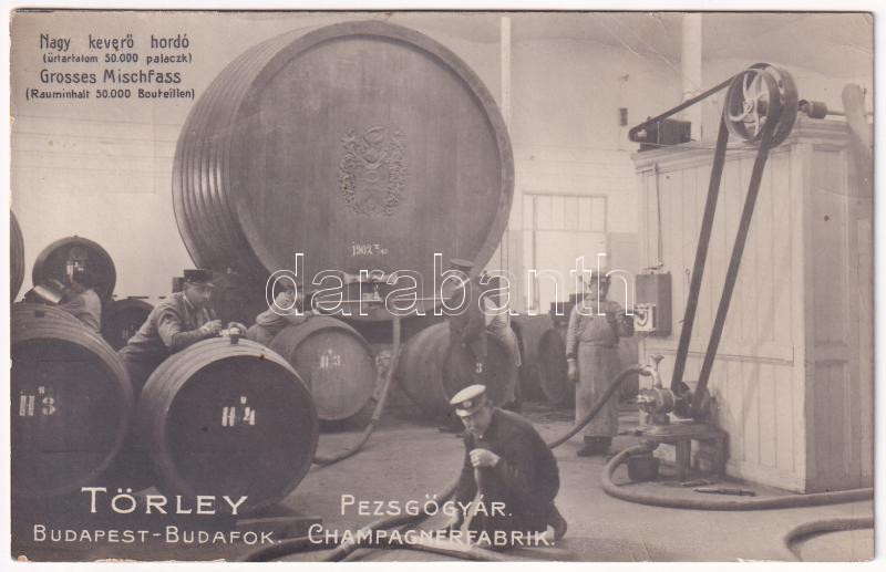 Budapest XXII. Budafok, Törley pezsgőgyár, belső, nagy keverőhordó (űr... https://www.darabanth.com/de/436-Fernauktion/436.0/Ansichtskarten/Ungarn~2000004/Budapest-XXII-Budafok-Torley-pezsgogyar-belso-nagy-keverohordo-urtartalom-50000-palack~II2834613