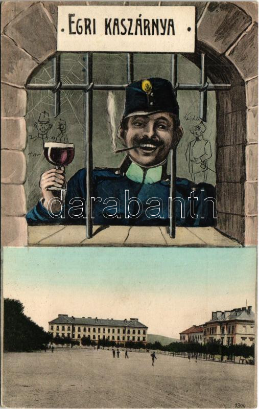 Eger, Kaszárnya. Humoros montázslap borozó katonával (ragasztónyom / g... https://www.darabanth.com/de/436-Fernauktion/436.0/Ansichtskarten/Ungarn~2000004/Eger-Kaszarnya-Humoros-montazslap-borozo-katonaval-ragasztonyom-gluemarks~II2837079
