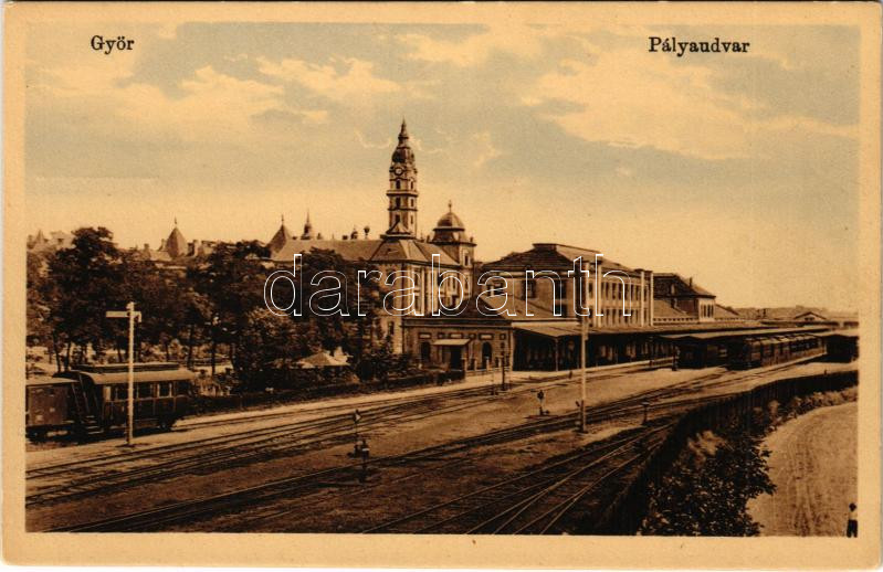 Győr, pályaudvar, vasútállomás, vonatok https://www.darabanth.com/de/436-Fernauktion/436.0/Ansichtskarten/Ungarn~2000004/Gyor-palyaudvar-vasutallomas-vonatok~II2832848