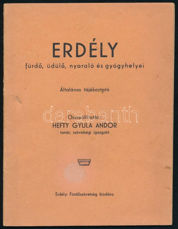 Erdély fürdő, üdülő, nyaraló és gyógyhelyei. Általános tájékoztató. Összeáll.: Hefty Gyula Andor. Erdélyi Fürdőszövetség kiadása. Cegléd, Garab József-ny., 29+2 p.