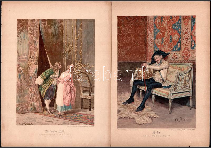 cca 1890-1900 8 db színes, reprodukciós illusztráció német és osztrák festők után. Kromotipográfia (Chromotypographie), papír, jelzett a metszeten, részben kissé sérült és kissé foltos, 30x22,5 cm