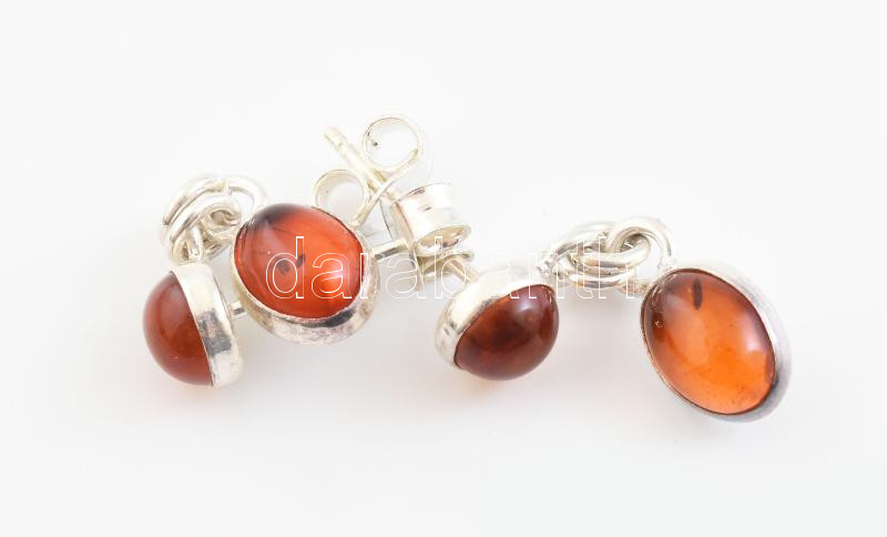 Beschreibung: Ezüst (Ag) borostyános fülbevalópár, jelzett, bruttó: 2,54 g. h: 2 cm