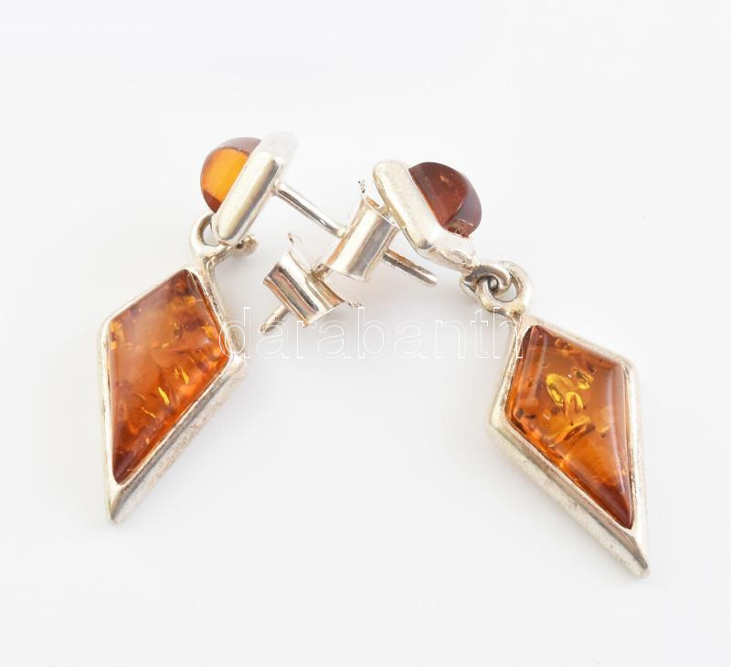 Ezüst (Ag) borostyános fülbevalópár, jelzett, bruttó: 3,79 g. h: 3 cm https://www.darabanth.com/de/436-Fernauktion/436.0/Juwellen-und-Kunstobjekte-aus-Edelmetall/Juwellen-und-Kunstobjekte-aus-Edelmetall~1000024/Ezust-Ag-borostyanos-fulbevalopar-jelzett-brutto-3-79-g-h-3-cm~II2830109