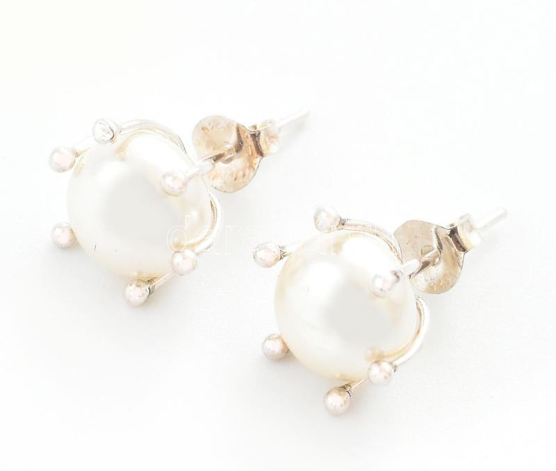 Beschreibung: Ezüst(Ag) fülbevalópár tenyésztett gyönggyel, jelzett, egyik gyöngyön kis karcolás, d: 1 cm, bruttó: 1,24 g
