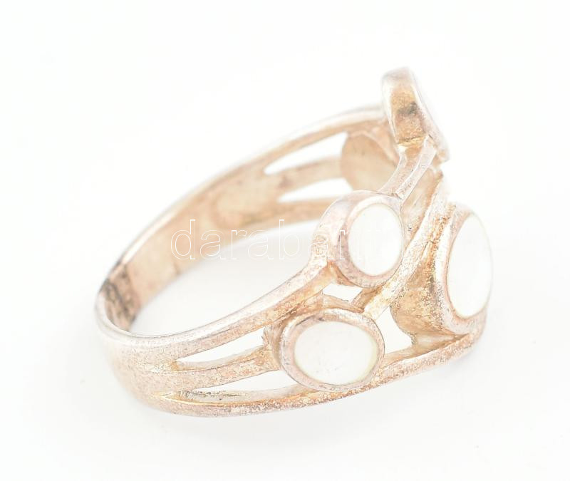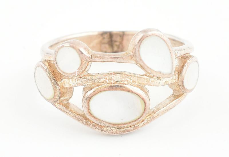 Ezüst(Ag) gyöngyházberakásos gyűrű, jelzett, méret: 58, bruttó: 5,8 g https://www.darabanth.com/de/436-Fernauktion/436.0/Juwellen-und-Kunstobjekte-aus-Edelmetall/Juwellen-und-Kunstobjekte-aus-Edelmetall~1000024/EzustAg-gyongyhazberakasos-gyuru-jelzett-meret-58-brutto-5-8-g~II2832104