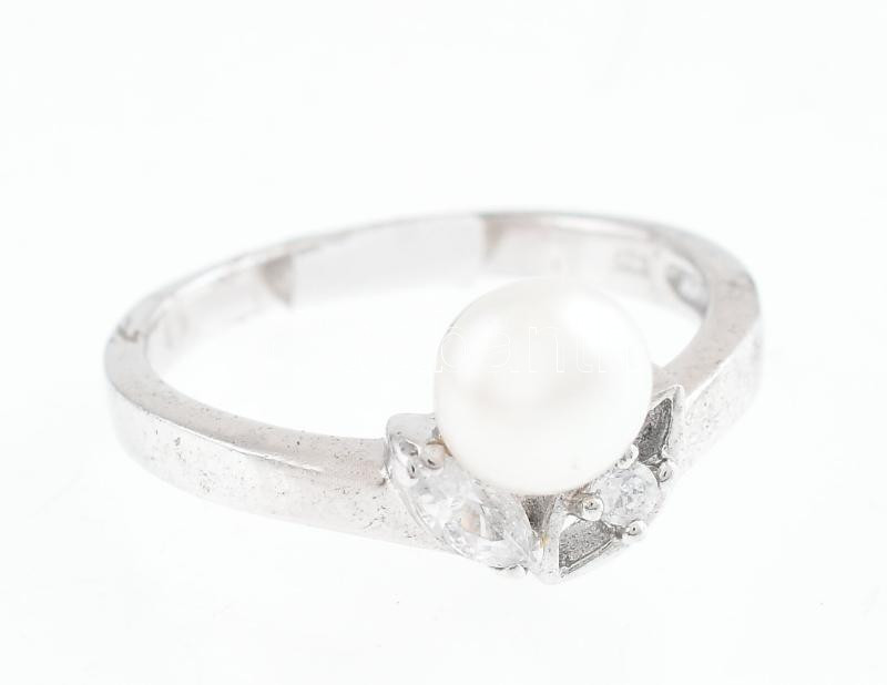 Beschreibung: Ezüst(Ag) gyűrű igazgyöngy ékítéssel, jelzett, méret: 54, bruttó: 2,6 g