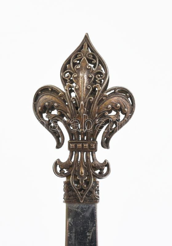 Díszes régi levélbontó kés, filigrán burbon liliom díszítménnyel, szép... https://www.darabanth.com/de/436-Fernauktion/436.0/Kunst-Dokumente-andere-Sammelgebiete/Antik~500008/Diszes-regi-levelbonto-kes-filigran-burbon-liliom-diszitmennyel-szep-allapot-h-17-cm~II2832470