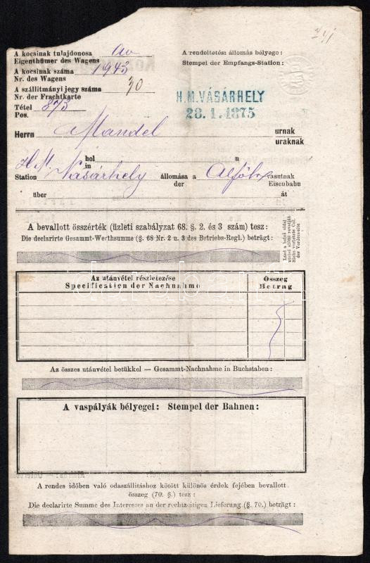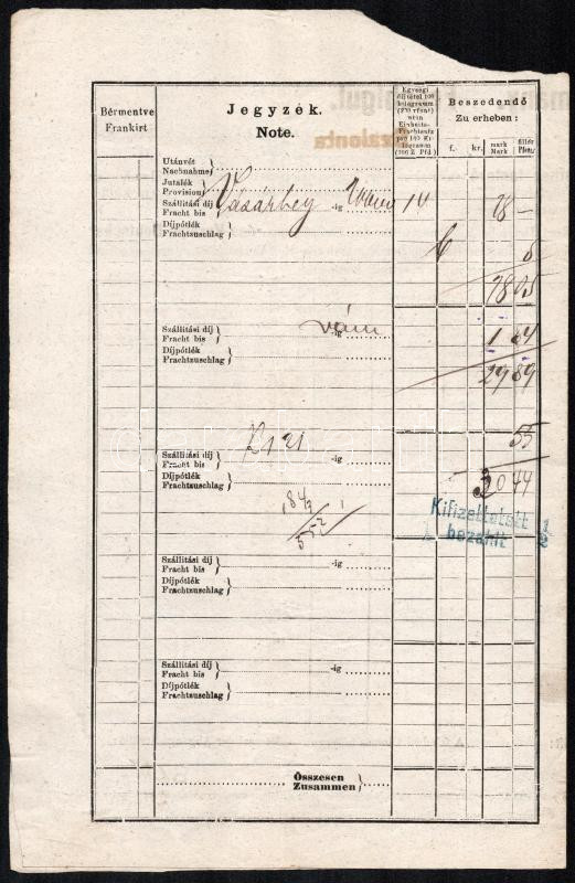 1874 Hódmezővársárhely - Szalonta vasúti fuvarlevél https://www.darabanth.com/de/436-Fernauktion/436.0/Kunst-Dokumente-andere-Sammelgebiete/Dokument~500018/1874-Hodmezovarsarhely-Szalonta-vasuti-fuvarlevel~II2826579