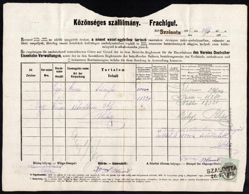 Beschreibung: 1874 Hódmezővársárhely - Szalonta vasúti fuvarlevél