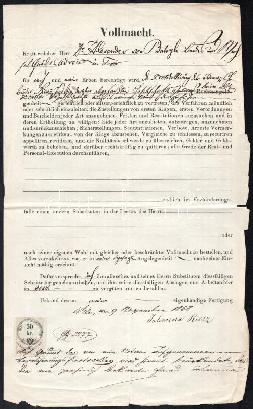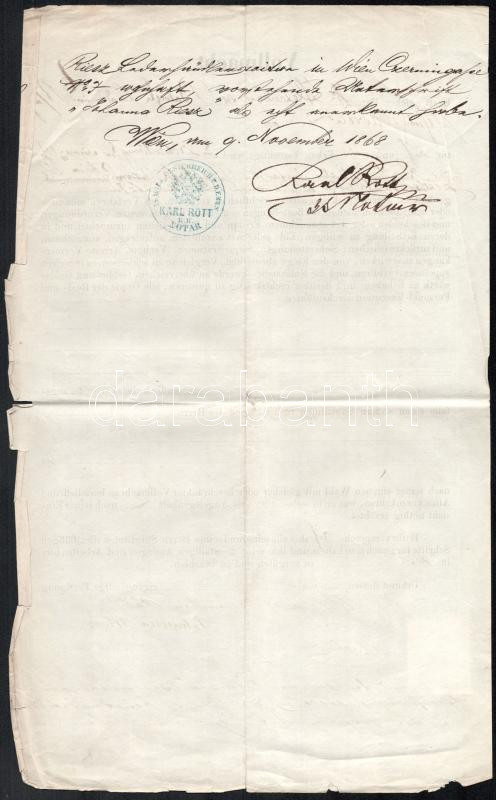 Bécs 1868 Meghatalmazás 50kr elfogazott okmánybélyeggel https://www.darabanth.com/de/436-Fernauktion/436.0/Kunst-Dokumente-andere-Sammelgebiete/Dokument~500018/Becs-1868-Meghatalmazas-50kr-elfogazott-okmanybelyeggel~II2835708