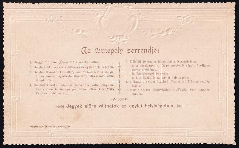 cca 1890 A Hódmezővásárhelyi Ács- és Kőműves Segédek Önképző Egylete z... https://www.darabanth.com/de/436-Fernauktion/436.0/Kunst-Dokumente-andere-Sammelgebiete/Drucksachen~1000003/cca-1890-A-Hodmezovasarhelyi-Acs-es-Komuves-Segedek-Onkepzo-Egylete-zaszloszentelesr~II2826666