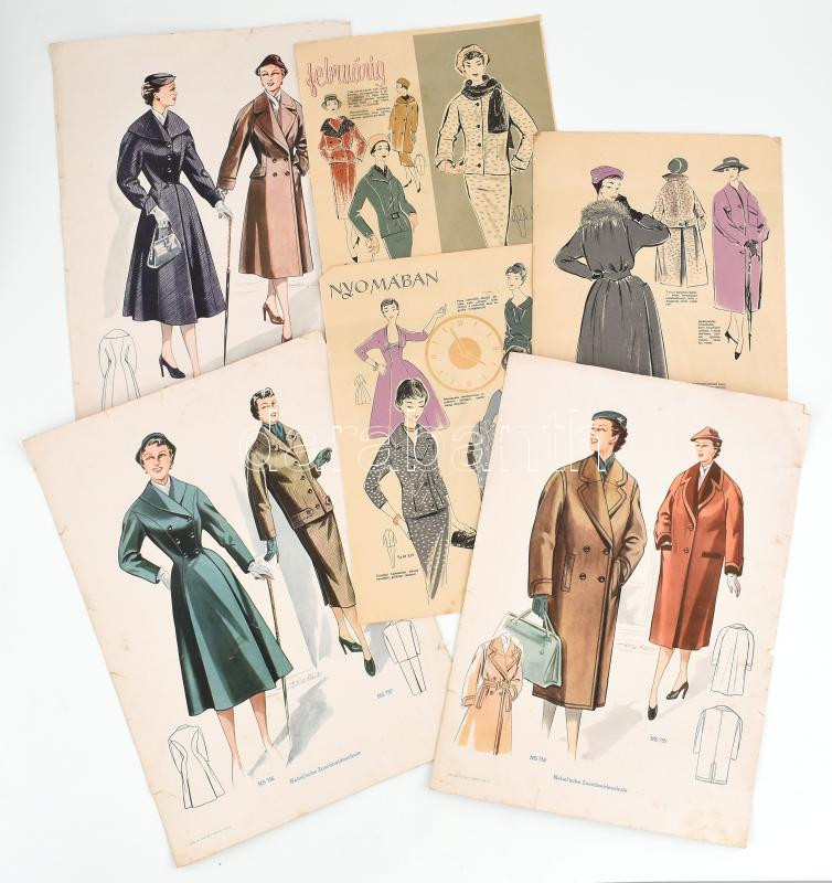 Beschreibung: cca 1930 6 db színes art deco divatillusztráció, papír, ofszet nyomat