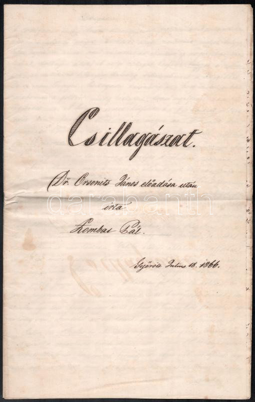 1866 Dr. Orsonits János: Csillagászat. - - - elÅ‘adása után Ãrta: Zomba... https://www.darabanth.com/de/436-Fernauktion/436.0/Kunst-Dokumente-andere-Sammelgebiete/Historische-Dokumenten-Handschriften~500019/1866-Dr-Orsonits-Janos-Csillagaszat--eloadasa-utan-irta-Zombath-Pal-Gyorott-Jul~II2828755