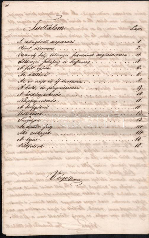 Beschreibung: 1866 Dr. Orsonits János: Csillagászat. - - - elÅ‘adása után Ãrta: Zombath Pál. GyÅ‘rött, Július 18. 1866. Kézzel Ãrt iskolai jegyzet, hajtott, 16 p.