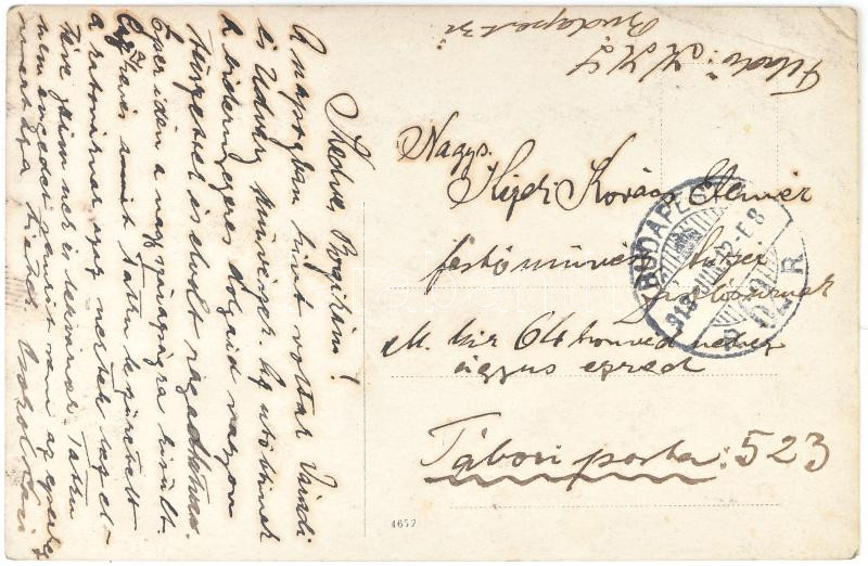 Beschreibung: 1918 Kézdi-Kovács László (1864-1942) festőművész, műkritikus autográf képeslapja feleségének benne művészeti ügyekről is