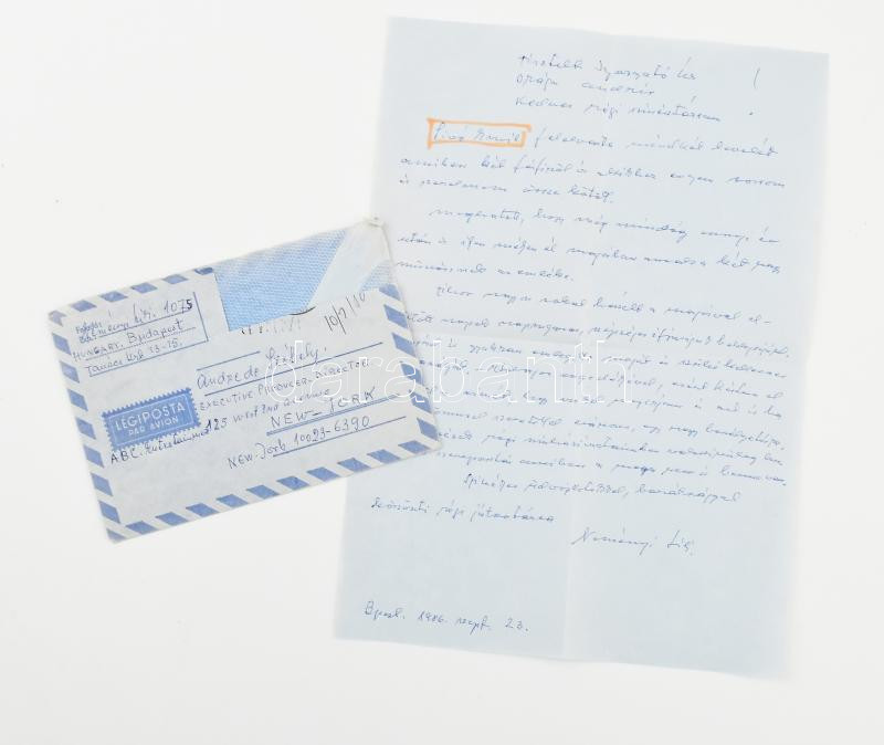 Beschreibung: Neményi Lili (1902-1988) opera-énekesnő autográf levele Székely Andrénak