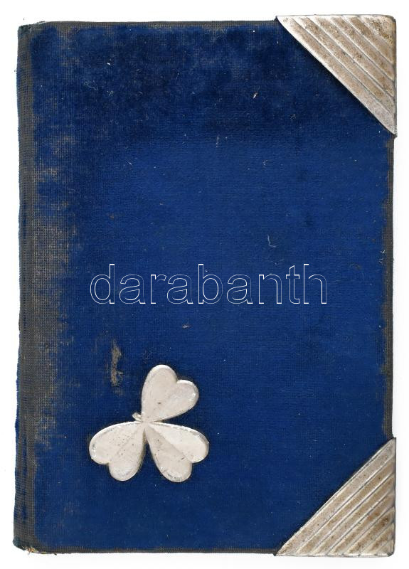 Beschreibung: cca 1890-1902 Régi emlékkönyv, bejegyzésekkel, illusztrációkkal, szárított növényekkel, fémveretes bársony-kötésben, néhány kijáró lappal