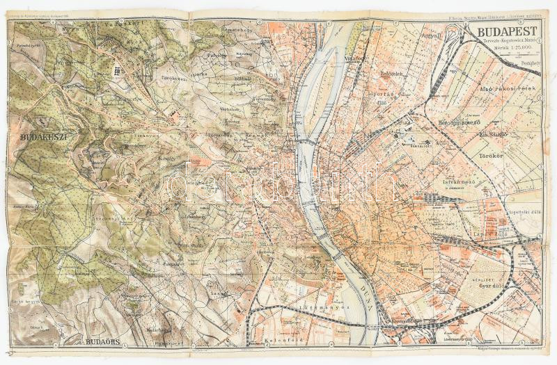 Budapest térképe, 1:25 000, tervezte: Kogutowicz Manó, Dr. Thirring Gusztáv Részletes Magyar Útikalauzok I. füzetének melléklete, vászontérkép, 37,5×58 cm