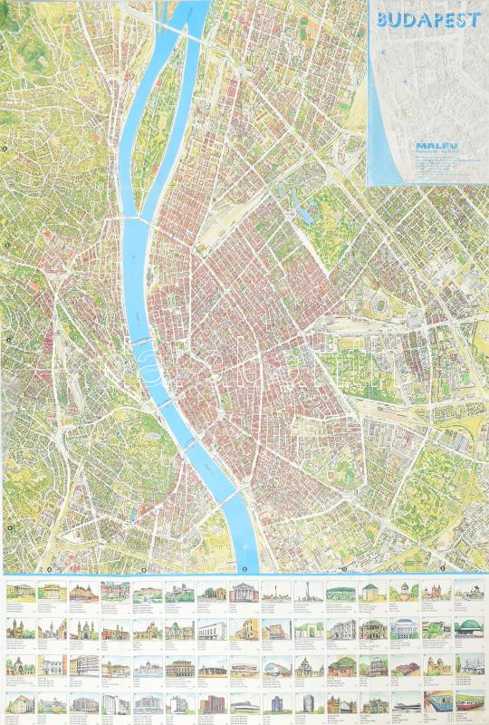 Budapest térképe, látnivalókkal, MALÉV kiadás, 98×64 cm https://www.darabanth.com/de/436-Fernauktion/436.0/Kunst-Dokumente-andere-Sammelgebiete/Landkarten~1000001/Budapest-terkepe-latnivalokkal-MALEV-kiadas-98C39764-cm~II2828286